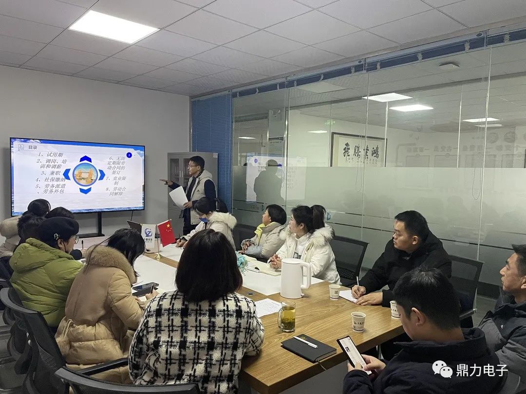 2021年12月24日,蚌埠鼎力電子科技有限公司邀請安徽大友昱達(dá)律師事務(wù)所楊寶根律師、許曉冬律師,為公司管理層進(jìn)行勞動(dòng)用工管控風(fēng)險(xiǎn)防范知識培訓(xùn)。